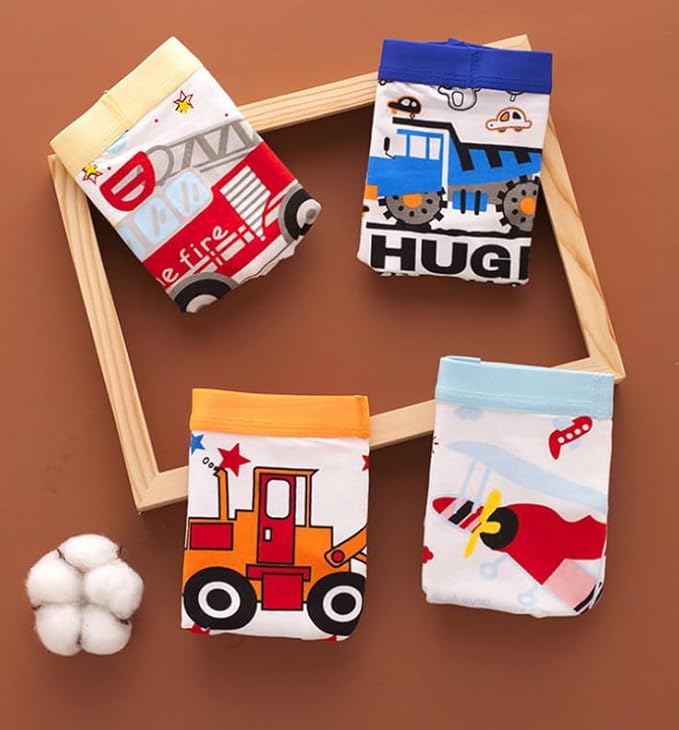 Boys' Cotton Briefs – Vehicle Print Keep your kid comfy and playful with these soft cotton briefs featuring fun vehicle prints like fire trucks, planes, and dump trucks. Breathable fabric, snug fit, and an easy-stretch waistband make them perfect for everyday wear.